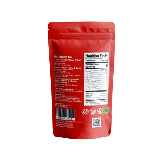 Onion, Chili Powder, Jalapeno, Tomato, Garlic, Habanero, Parsley Dip Mix Recipe:4 TBS- The Heat is On mix1 1/2 Cup Sour Cream1/2 Cup MayonnaiseCh...