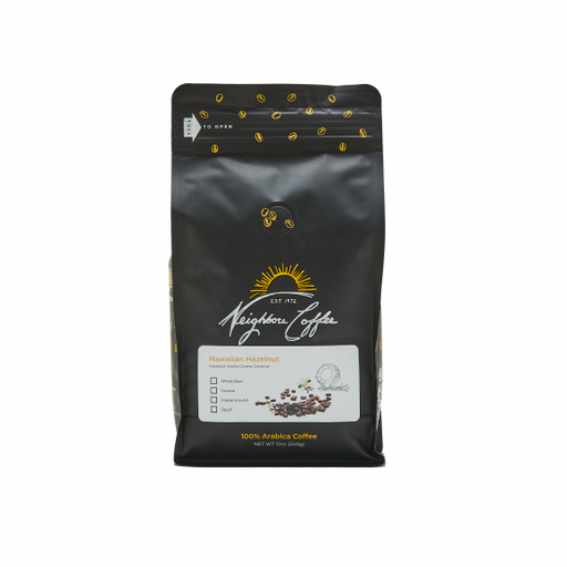 Neighbors CoffeeA delicious smooth hazelnut flavored coffee with tropical fruit undertones. Large coconut flakes highlight this popular coffee.