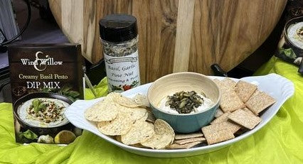 Wind and Willow, Inc.Basil Pesto Dip Mix Full of basil and garlic with a hint of lemon to brighten it up! For a fun presentation, garnish with your favorite herbs, p...
